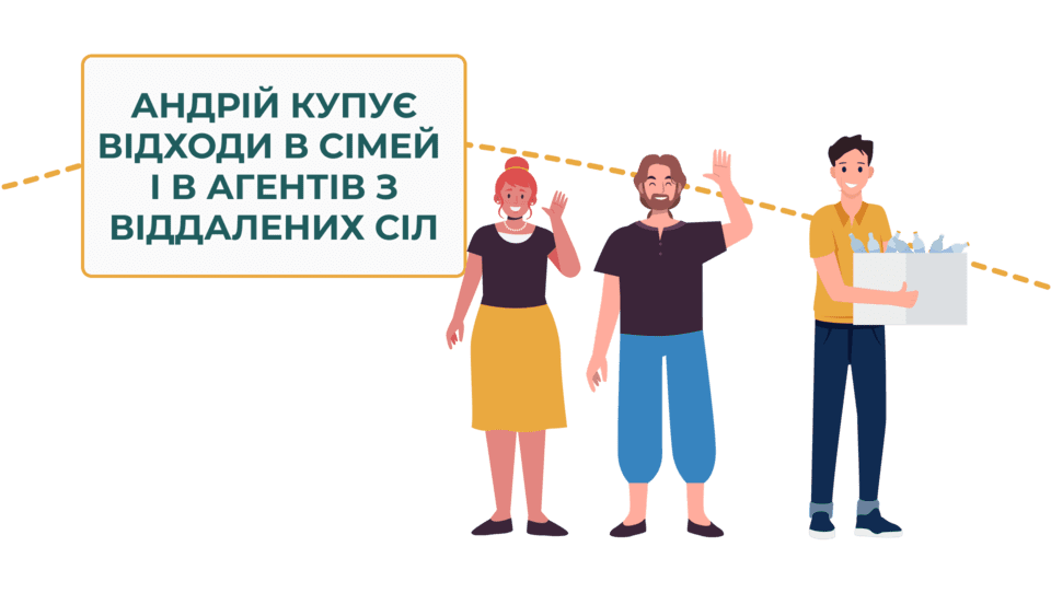 Оператори ЕкоСалонів купують вторсировину в людей і в Агентів з віддалених сіл та продають її заводам, які в подальшому переробляють цю сировину.