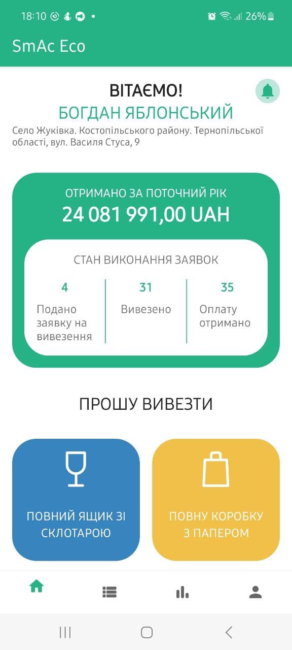 Для організації процесу збору вторсировини ми розробили додаток ECO (Android | iOS).